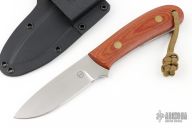 This K-11 Columbia River Skinner by Dozier Knives features a satin finished blade with .137" blade stock and 1.043" blade depth, full tang construction. The handle has natural canvas micarta scales with brass pins and lanyard hole. Comes with kydex sheath with belt clip. Has a couple light scratches, excellent condition.