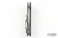 This Domino Flipper has a satin finished CTS-XHP stainless steel drop/ spear point blade with thumb hole and notched thumbrest. Handle is stonewashed titanium with A-side blue weave carbon fiber overlay, 4-way reversible black stainless steel clip, and lanyard tube pin. Action is extremely responsive with great lockup. Excellent condition. Comes with original box and papers.