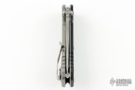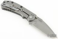 This 0550 Zero Tolerance/Hinderer designed folder features a black G-10 and bead blast titanium handle. The blade is tumble finish with dual thumbstuds. "0550 Hinderer design Made in the USA" stamped on back of blade with serial number 5264. Tip up carry, 4-way reversible. Strong lock up and detent. Excellent condition. Comes with original box and papers.