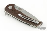 This Voorhies designed Boker Model 13 features a CPM-154 tumble finished drop point blade with flipper. The handle is comprised of stainless steel liners, canvas micarta scales, a stainless backspacer, and clip positioned for tip up carry. Comes with original box and papers. Excellent condition. #054