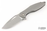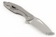 This Arius by Koenig knives features a Burnished finished blade with polished flats thumbhole and flipper. The handle has a bead blasted smooth titanium frame with a titanium tip up clip, titanium backspacer. Has ceramic bearings and a ceramic detent ball. Nice detent, lockup and blade seating. Comes with original box and COA June 26, 2023, Gen4B9.  Excellent condition.