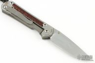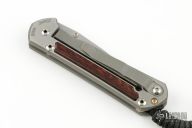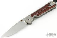 This Small Sebenza 21 by Chris Reeve Knives features a two tone blade with notched thumbrest and single thumbstud. The handle has a two-tone titanium frame with snakewood inlays, matching tip up clip. Comes with original box, sheath, cloth and COA dated MAY 19, 2016. Has couple scuffs on the clip, otherwise Excellent condition.