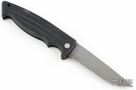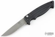 The Benchmade 2000S Reflex from Benchmade is a side opening button automatic with bead blasted, partially serrated blade and black fluted aluminum handle. Good strong opening action. Comes with original box, and nylon belt sheath. Has some scuffs and scratches, great condition otherwise.