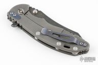 This XM-18 Skinner from Rick Hinderer Knives features a 3.5" blade, notched thumbrest and flipper, dual thumbstuds. The handle has a black G-10 scale, and working finished titanium handle, tip up or down pocket clip, fuller tab and standoffs. Clip can be mounted for tip up or down carry. Nice lockup, seating, and detent. Has some scuffs and scratches, great condition otherwise. Comes in the wrong Hinderer box.