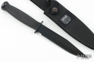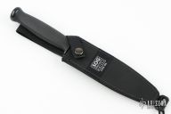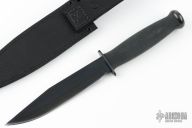 This is an extremely rare Recon Government, one of the few gun-blued SOGs made. It features a clip point blade with .153" blade stock and 1.131" blade depth, hidden tang construction. The handle has a blued steel guard and butt with a rubber grip. Comes with a black nylon sheath. Has a couple very light scratches, otherwise excellent condition.