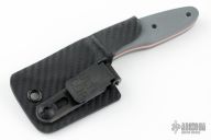 This knife by David Lancaster Clark features a satin finished blade with false top edge, .121" blade stock and .796" blade depth, full tang construction with gray G-10 scales and red liners. Comes with a kydex sheath with Ulti-Clip. New from maker.