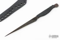 The knife by Meathook Customs features a gun blued blade. .204" Blade Depth. .462" Blade Depth. Black cord wrapped grip. Includes a kydex sheath. Excellent Condition.