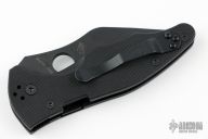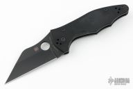 This Yojimbo 2 by Spyderco features a black finished wharncliffe blade with thumbhole. The handle has a black G-10 frame with stainless steel liners, lock is on the spine of handle. 4-way reversible stainless steel clip. Nice detent, lockup and blade seating. Comes with original box and papers. Excellent condition