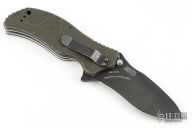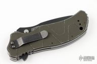 This 0350GRN liner lock flipper by Zero Tolerance features a recurve spear-point black blade, stainless steel liners and dark green aluminum scales. It also features the Speed-safe assisted opening system. Perfect function. Includes original box and paperwork. Has scuffs and scratches throughout. Good user condition.