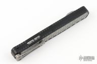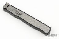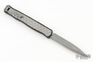 This Cleric 2 by Heretic Knives features a battleworn double edged blade with fullers. The handle has a black aluminum frame with bubble titanium inlays, battleworn tip down stainless steel clip and hardware. Comes with original box and lube. Excellent condition.