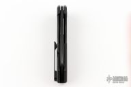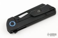 This Production Yeager by Brian Brown features a wharncliffe style blade with black PVD finish. The handle has a black PVD titanium frame with anodized titanium pivot collars, black PVD tip up clip and backspacer. Excellent condition.