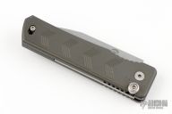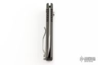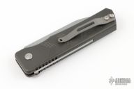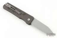 This thumb release auto by Rob Dalton features a bead blast chisel ground tanto blade with false top edge. The handle has a green milled aluminum frame with tip up titanium clip. #2158 on frame. Has a small ding on the butt of the frame, otherwise excellent condition.