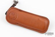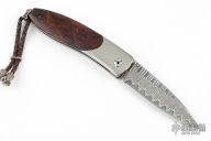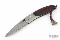 This B05 by William Henry features a San Mai Damascus blade with a bead blast finished titanium frame, desert ironwood burl scales. Includes original box, and sheath. Has some light scratches, otherwise excellent condition.
