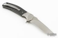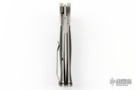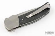 The RJ Martin Q-36 won the award for Best Tactical Folder at the 2007 Blade Show in Atlanta. This Q-36 flipper from RJ Martin features a satin finish drop point recurve blade with notched thumb ramp and flipper The handle has orange peel finished titanium bolsters and liners, carbon fiber scales and a titanium tip up clip. Powerful and smooth flipper opening allows you to easily deploy the blade with no wrist action needed. Nice blade seating, detent and lockup. Has some light blade play in the open position. Excellent work. Excellent condition. Comes with a zippered case.