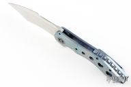This Dress Flipper by the Fischer Bros features a hand rub satin finished tanto recurve blade with false top edge and notched flipper. The handle has a full timascus frame with custom pivot with timascus pivot collars, timascus tip up clip with hidden screws, timascus notched backspacer. Nice detent, lockup, action and blade seating, rides on bearings. Comes with zippered case. Excellent condition. Hard to come by!