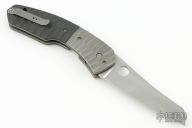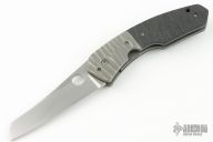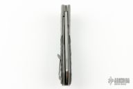 This Rock Lobster linerlock folder by Jens Anso features a hand rubbed satin finish blade with thumb hole. The handle has carved bead blast finished titanium bolsters, carved carbon fiber scales, titanium liners and pocket clip, tip up carry. Strong lockup and nice detent and blade seating. Includes a zippered case. Few very light scratches on the pocket clip. Excellent condition otherwise.