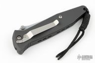 This Socom M/A by Microtech has a silver finished tanto blade with dual thumbstuds and notched thumbrest. The handle has a black aluminum frame with rubber inserts and a tip down bead blasted stainless steel clip. Dated 6/99. Includes original box, sheath, and paperwork. Excellent condition.