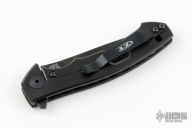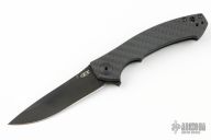 The Dmitry Sinkevich designed ZT 0450CF knife is a compact version of the award-winning 0454 folder. It has an S35VN stainless steel blade with a black DLC finish. A flipper and the KVT ball-bearing pivot produce reliable, quick one-hand deployment. The titanium handle has a sturdy frame lock and a stylish carbon fiber scale that contrasts nicely with the black blade. A reversible tip-up carry pocket clip rounds out the package.  S/N 13584.  Includes the original box and papers.  Excellent Condition.