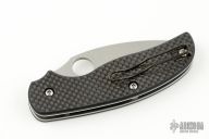 This Sage by Spyderco Knives features a satin finished blade with thumb hole. Carbon fiber pattern G-10 scales, stainless steel liners. Comes with original box and papers. Excellent condition.