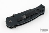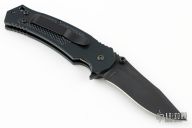 This M1 X Linerlock Assisted Flipper by Combative Edge features a black blade with dual thumbstuds, flipper and a notched thumbrest. The handle has a black aluminum frame with a tip up black stainless steel clip. Nice action, lockup and blade seating. Comes with original box, paper, and zipper case. Excellent condition.