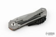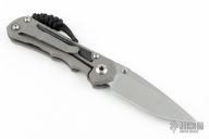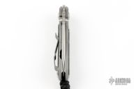This Small Inkosi by Chris Reeve Knives features a tumble finished blade with dual thumb studs and notched thumbrest. The handle has a bead blasted titanium frame with black canvas micarta inlays over a single barrel spacer. The bead blasted titanium clip. Lanyard on pommel. Comes with original box, cloth, tools, lube, and COA dated February 20, 2018. Excellent Condition.