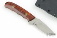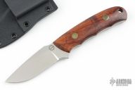 This K-9M Modified Personal Utility by Dozier Knives features a satin finished blade with .146" blade stock and .960" blade depth, full tang construction. The handle has Ironwood scales with brass pins and lanyard hole. Comes with kydex sheath. Excellent condition.