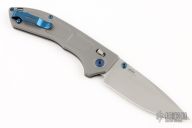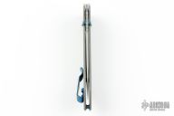 Featuring a milled titanium handle, the Narrows is as comfortable as it is lightweight. Measuring just over 4.5 inches long, your hand feels in control and never crowded as you set the Narrows to work. The vibrant blue anodized thumb studs, pocket clip, and hardware add a beautiful style to the pocket knife you'll treasure for a lifetime.