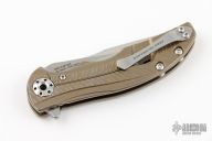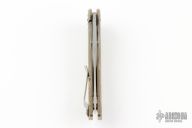 This 0609 RJ Martin flipper by Zero Tolerance features a satin finished blade with stonewashed flats, notched thumbrest and flipper. The handle has a milled and anodized titanium frame with a tip up reversible stainless steel clip. Rides on bearings, nice detent, lockup and blade seating. S/N 6121. Comes with original box and papers.  Has a couple scuffs and scratches, otherwise excellent condition.