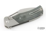 This Production Gungnir by Renegade Provisions Company features a satin finished blade with notched thumbrest and flipper. The handle has a titanium frame with black canvas micarta scales. Includes original box and papers. #114/300. Excellent condition.