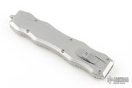 This Brand New Sand Shark OTF double action automatic by Desert Knife Works features a satin finished double edge blade and a bead blasted stainless steel handle with matching tip down clip. Comes with original tube and pouch. Excellent condition.