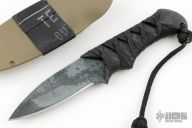 This Blood Shark by Tracker Dan features a drop point blade with .182" blade stock and 1.008" blade depth. The handle has a black cord wrap over a full tang, lanyard hole. Comes with a 3/4 kydex sheath and the knife will fit in either direction. Excellent Condition.