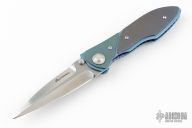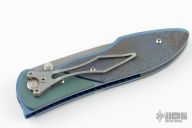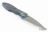 This Phantom by Allen Elishewitz features a satin finish blade with chisel grind and hollow ground backside, and single knurled thumb stud, false top edge. Anodized titanium liners with anodized titanium scales and bead blasted titanium bolsters. Nice blade seating, and lockup. Has a few light scuffs, otherwise excellent condition. Comes with a civivi zipper case.