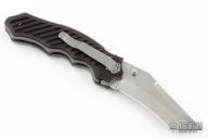 This Triumph Assisted Opening Folder by Crawford Knives features a satin finished blade with fullers and dual thumbstuds. The handle has black linen micarta scales, bead blasted titanium liners, stainless steel backspacer, tip down stainless steel clip. Nice action, lockup and blade seating. Comes with a civivi zippered case. Has a few light scuffs, otherwise excellent condition.