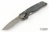 This knife by Camillus knives features a bead blasted partially serrated blade with notched thumbrest. The handle features black G10 scales over steel liners. Hard to find model. Features EZ opener slide button action. Black tip down clip. Has a few scuffs, has been resharpened, otherwise good condition.