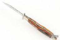 This D/A Auto Conversion Cheetah lock back folder from Case Knives features a clip point mirror polished blade with nail nick and fileworked spine. The handle has nickel silver bolsters, front and rear, and swing guard, and the scales are stag over brass liners, fileworked stainless steel backspacer. Has a couple light scratches, otherwise excellent condition.