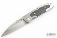 This Cortex by Allen Elishewitz features a hand rub satin finished blade with dual thumb studs and a notched thumbrest. The handle has a two-tone titanium frame with carbon fiber inlays and a tip down stainless steel clip. Strong lock up, perfect seating and nice detent. Has some scratches on the frame, and the very tip of the blade has been rolled over. Great condition otherwise.