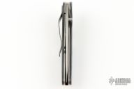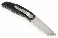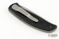 This Assisted Opening Linerlock by Ken Onion features a hand rub satin finished blade with single thumbstud, has assisted opening. The handle has black G-10 scales, bead blasted titanium liners and tip down clip, and a red/black G-10 backspacer. Nice detent, lockup and blade seating. Excellent condition. Comes with a nylon sheath.