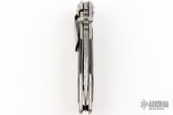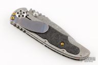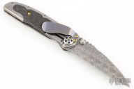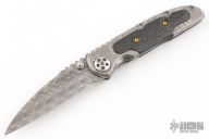 This Cortex by Allen Elishewitz features a Damascus blade with dual thumb studs and a notched thumbrest. The handle has a Damascus frame with carbon fiber inlays and a tip down stainless steel clip. Strong lock up, perfect seating and nice detent. Has some light scratches, great condition otherwise.
