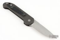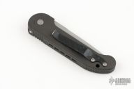 This UDT side opening automatic features a stonewashed blade. The handle is black anodized aluminum with custom carbon fiber inlays, pocket clip positioned for tip up carry and has a carbon fiber overlay, and a lanyard hole at the butt. Dated 05/2000 S/N#3024. Has some scuffs and scratches, the inlays weren't done very well, otherwise good user condition.