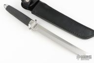 This Magnum Tanto IX by Cold Steel features a satin finished tanto blade with VG-1 San Mai. Guard and pommel are stainless. .187" blade stock and 1.099" blade depth. Handle is textured Kraton for a sure non-slip grip. Comes with black leather sheath and original box. Excellent condition.