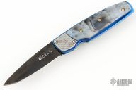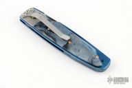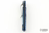 We’re offering two models. For traditionalists, the base model 7403 features a satin blade finish, vibratory frame finish, and gray/black swirled scales. For the more adventurous, the deluxe model 7404 boasts a black titanium nitride blade finish, deep blue titanium nitride frame, and wild blue/black swirled scales.