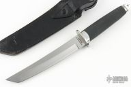 This Magnum Tanto by Cold Steel features a trailing point tanto style San Mai blade with .187" blade stock and 1.110" blade depth. The handle is comprised of a steel guard and pommel with a textured rubber grip over hidden tang construction. Includes original black leather sheath with belt loop and box. Excellent condition.