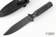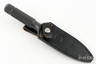This Mark VI by Chris Reeve was designed to incorporate the two basic criteria required in knives destined for hard field usage, these clip-points have plenty of blade weight and good strong points. This design has been used by soldiers all over the world who have found them to be extremely good weapons as well as rugged dependable tools.  Includes black leather sheath. Has some wear on the butt cap, otherwise excellent condition.