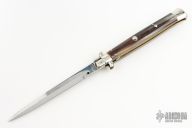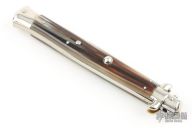 Angelo Campolin Sr. was born in 1923 in Maniago, Italy. He worked on perfecting his knife making skills before WWII and at this time made his first switchblades. After the war, in 1947 he started his company and made 30 stilettos with the marking “Angelo Campolin”. In the 1970’s Angelo’s son Gianni started to work in the company and they were specializing in folding hunting knives and also manual folding stilettos for the Robert Klaas company in Solingen Germany with their Kissing Cranes mark. In 2002 American switchblade collectors Dan Fuller, Brad West, and Tim Zinser were visiting Maniago and enjoying a few glasses of wine in a bar with Angelo Jr. and Gianni. The discussion was about a new name for some knife projects they wanted to pursue. It was Brad West that suggested the tang stamp should be AGA, for Angelo, Gianni, Angelo, thus representing three generations in the knife making business. The Campolins liked it and it stuck. In the beginning it was just a few items, but grew to the point where now there are 12 models and different scale options. The goal has been to offer quality switchblades using the old methods and traditions. Being a collector himself, Angelo Jr. knows what others like. The company headquarters has moved to Austria with production still in the original Maniago shop, as well as the others in Maniago that produce the knives for A.G.A. Campolin.