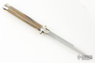 This pick Lock from A.G.A. Campolin features a mirror polished spear point blade with a false top edge. The handle has nickel silver bolsters and pommel with french horn scales over brass liners and stainless steel backspacer.  Excellent Condition.