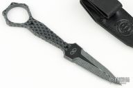 Loads of time went in to this knife Design. Nathan Murr pressed me repeatedly to design a Ring knife and this is the end result. It has all the ergonomics and aesthetics you have come to expect with a Bawidamann Product. The Offset Fishnet handle pattern is Classic and Sexy AF. The significant feature is the faceted "Tear Drop" shaped ring allowing a larger finger in a smaller ring area. Because it is faceted you can get good purchase on the outside of the ring and run the knife without having an index finger in ring.