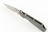 In 1988, he began making specialized knives for use by the military. This turned out to be fortunate turn of events, both for Mick and for the knife using world at large. Mick’s approach was to not get burdened by the weight of past designs. He started with a tabula rasa, a clean slate, informed only by his own experiences and knowledge of what a soldier needed in a knife. The knives he made didn’t look like the hunter-inspired knives seen in most PXs; instead they were almost brutish in their functionality: beefy, solid, and with unbreakable ¼” stock full tangs. These knives were the first indication of his innovative approach: in addition to their utilitarian design, the knives carried a subdued finish and subdued sheaths. No one carrying a Strider knife was going to be spotted because of sunlight glinting off of polished steel or a glossy leather sheath. Soldiers, policemen, and other men going into harm’s way couldn’t buy them fast enough. Mick sampled some good ideas, but made them great. For instance, he was not the first to wrap a knife handle with paracord, but he was the first to do it in a way that was tough enough for sustained infantry use. His knife line grew over the following years to include different varieties of fixed blades, all distinctive and many with specialized uses. But constant in all of them was a disregard for convention, and a desire to try new ideas. An example of this was the Ajax – it featured a very wide blade surface clearly designed to inflict damage. It drew on the weapons carried by Roman legionnaires, yet was modern and usable in the 21stCentury battlefield. Mick also worked on his technical skills, always striving to become better at the physical craft. At the 2002 Blade Show, a group of the best tactical knifemakers in the country decided to compete with each other to produce the most innovative and interesting fixed “battle blade” at the show. Mick’s entry, an incredible integral knife made out of ½” titanium stock with a zippered composite blade, gorgeous handles, and integral guard was the unanimous winner, and effectively retired the competition.