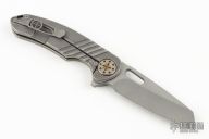 The latest from Curtiss Knives.  This F3 Large Flipper Wharny has Slide Mill on the Ti, Polished Bronze Hardware, and a 2 Tone Magnacut Blade. This is the latest version with steel lock insert.