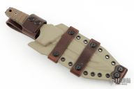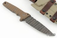 This M-15 by Miller Bros Blades features a drop point blade with swedge, notched thumbrest made from Z-Wear PM steel, .324" blade stock 1.561" blade depth, full tang construction. The handle has textured earth brown G-10 scales, notched tang, lanyard hole at the butt. Comes with a kydex/leather sheath. Comes with COA dated 2-2024. New Condition.