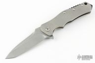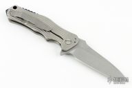 This "Machine" is a Collaboration between RJ Martin and Three Rivers and is an RJ Martin Design. Features a tumble finished tanto blade with swedge, notched thumbrest and flipper. The handle has a tumble finished and milled titanium frame with a black G-10 backspacer with jimping, lanyard hole at the butt and a tip up tumbled titanium clip. Has a polished pivot screw. This knife has all the functionality and features you would expect from RJ Martin! Each of these knives was tuned and sharpened by RJ Martin. Excellent condition.